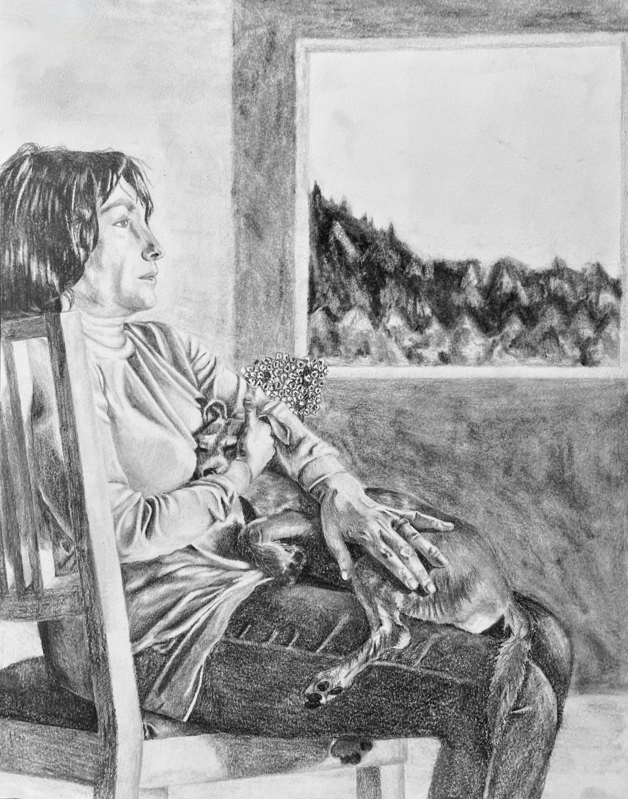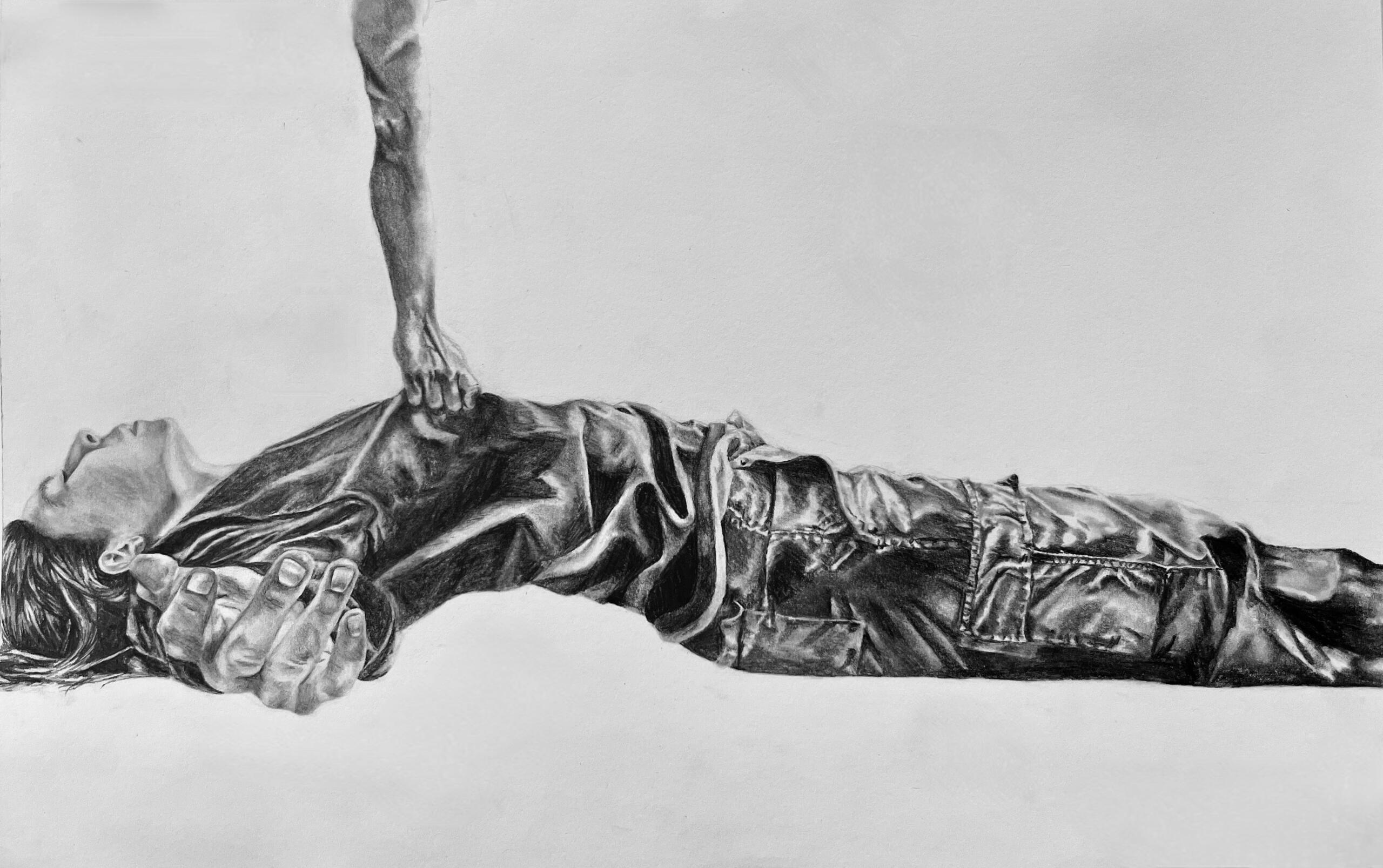Self Portrait: Take Me Away, examines the feelings of despair that come with extreme isolation. Drawn in the aftermath of the Covid-19 pandemic, the piece attempts to replicate the helplessness I felt while recovering from the psychological effects of months of being in quarantine. I depict myself surrendering to forces beyond my control, as though being physically carried away by influences I am powerless to resist.